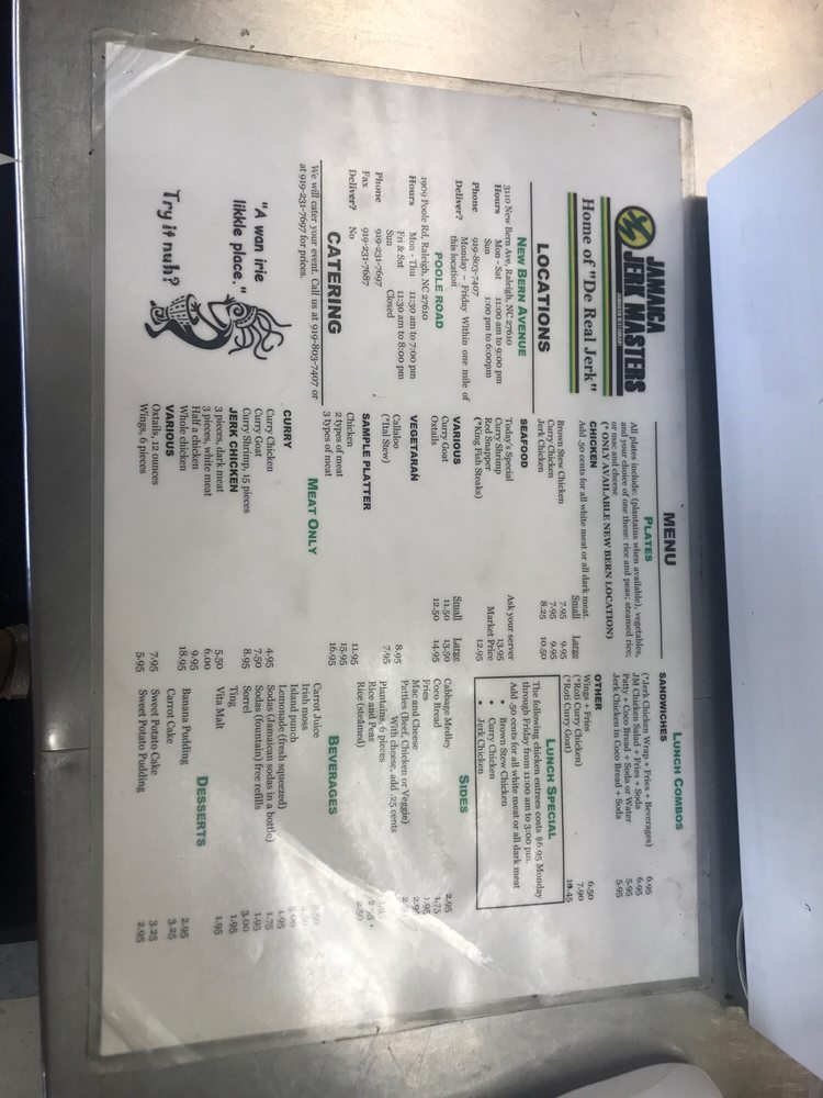 Welcome to Jamaica Jerk Masters, a vibrant slice of the Caribbean nestled in Raleigh, NC. This eatery specializes in authentic Jamaican cuisine, offering a menu that bursts with flavor and tradition. Customers rave about the Jerk Chicken Plate, prepared to perfection, whether you prefer white or dark meat. The Chicken Sampler Platter and Oxtails Plate also make for hearty choices, sure to satisfy any appetite.